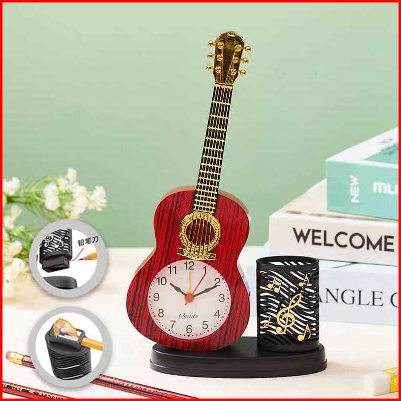 Jam Weker Alarm Gitar Kayu Tempat Pensil Ada Serutan Pensil Jam Meja Alarm