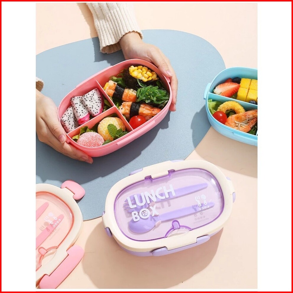 Kotak Makan Lunch Box Anti Tumpah 3 Skat 850ml 392 Bpa Free Include Sendok Dan Garpu Hot Item