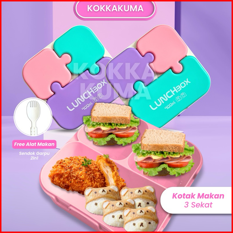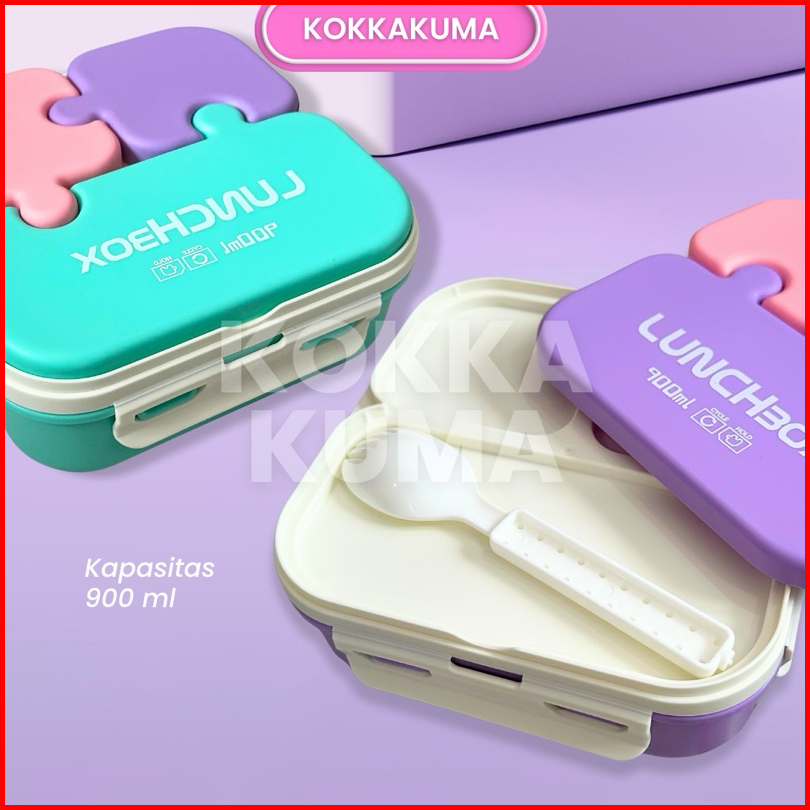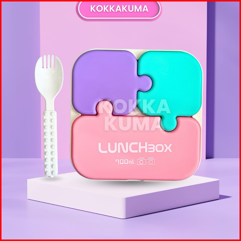 Kkm 900 Ml Lunchbox Puzzle Kotak Bekal Bpa Free Bentuk Unik Lucu Warna Warni Pastel Ringan Dapat Sendok Bahan Plastik Da