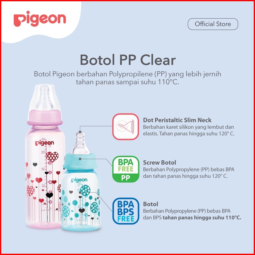 Botol Pigeon Pp Clear Premium Slim Neck Dot Peristaltic 120ml 240ml