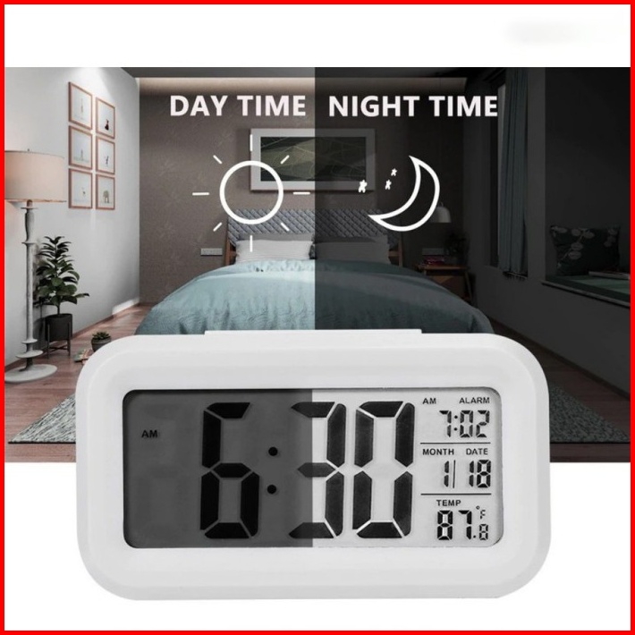 Jam Meja Digital Alarm Tidur Weker Sensor Cahaya Suhu Ruangan