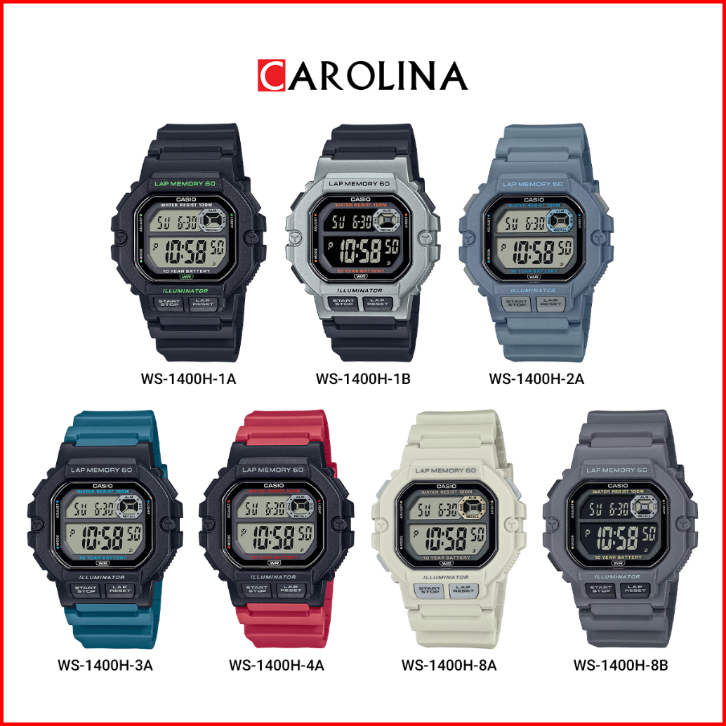Jam Tangan Pria Casio General Ws-1400h-1b Illuminator Sports Gear Grey Digital Dial Black Resin Strap