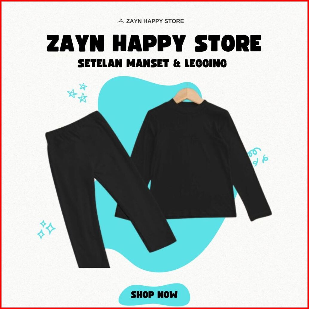 Setelan Manset Dan Legging Anak Lengan Panjang 2-13 Tahun Hitam Polos