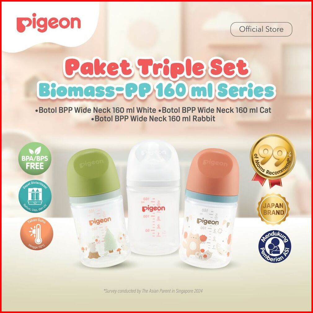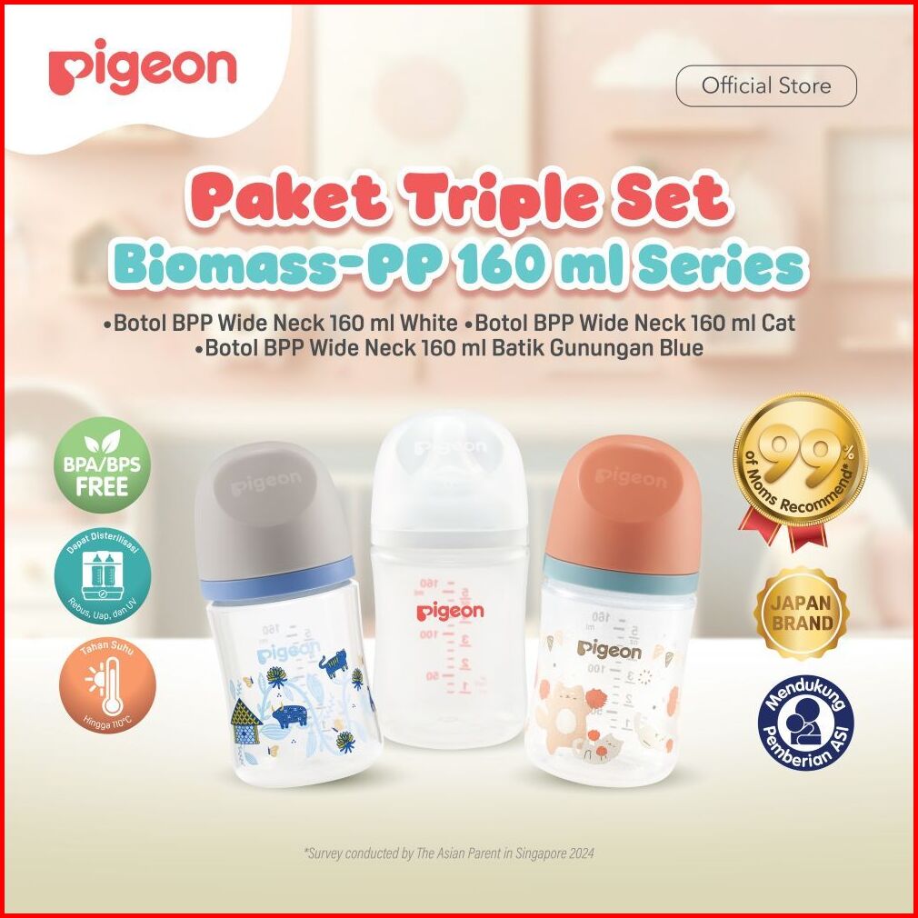 Triple Set Pigeon Botol Biomass-pp 160ml W Softtouch Nipple Dot Series Pilih Variasi Anti Kolik Botol Bayi