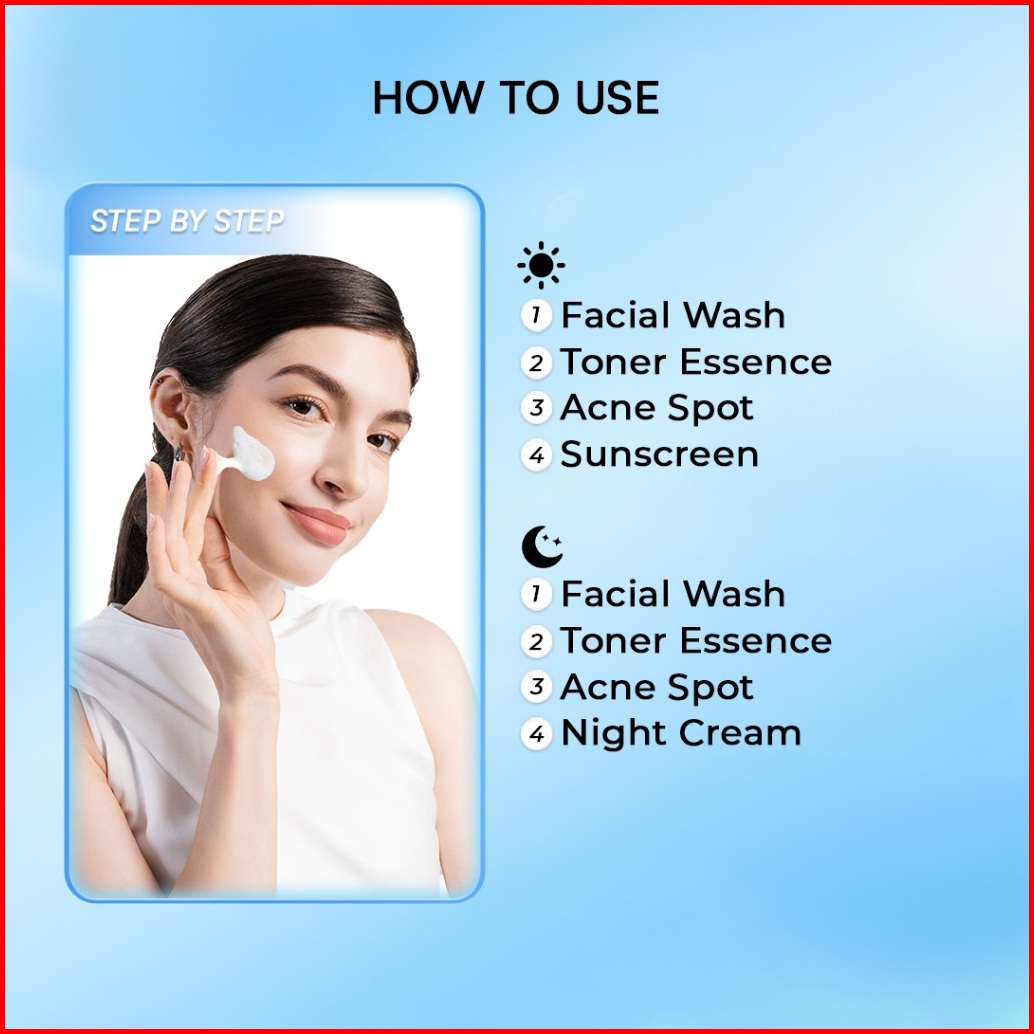 Skinmology By Bening S Clinic Indonesia - Paket 5 In 1 Acne Expert Series - Cream Malam - Day Cream - Sabun Muka Face