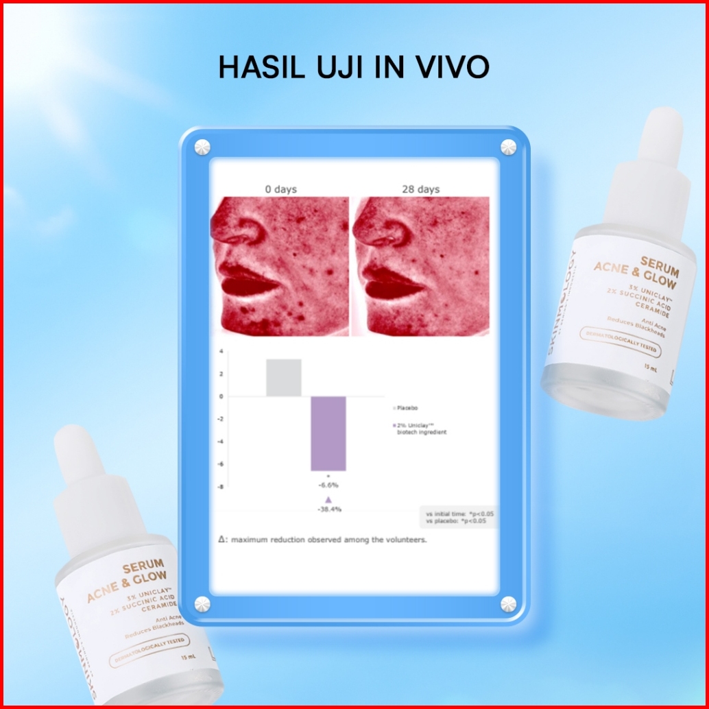 Skinmology By Bening S Clinic Indonesia - Serum Acne Glow - Uniclay Ceremide - Mengatasi Jerawat Menyamarkan Pori - Wani