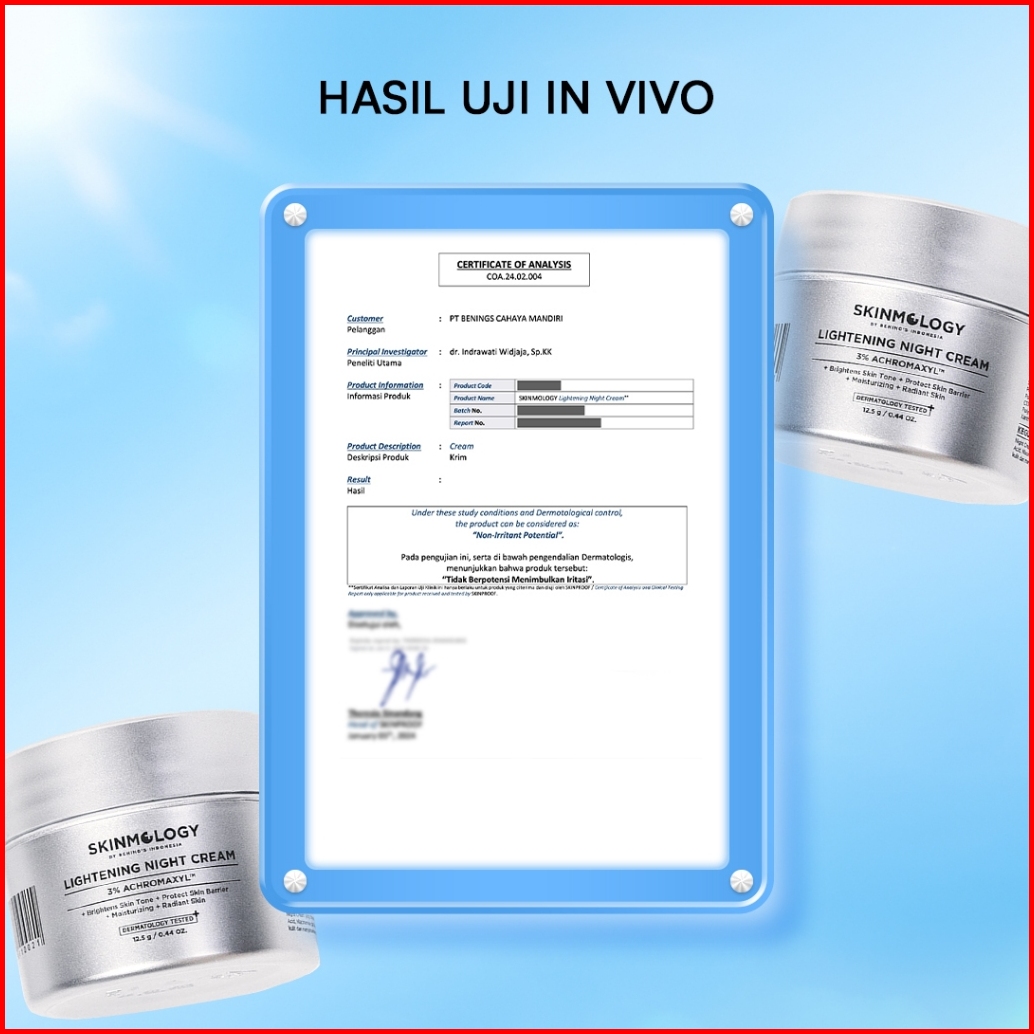 Skinmology By Bening S Clinic Indonesia - Lightening Night Cream Krim Malam - Achromaxyl Niacinamide Tranexamic Acid - M