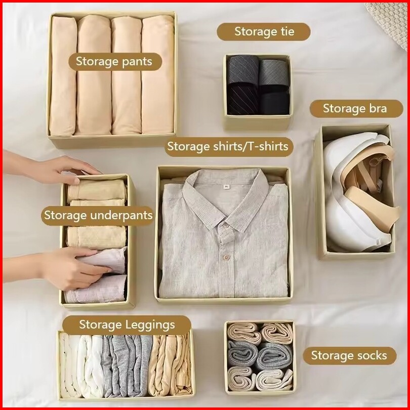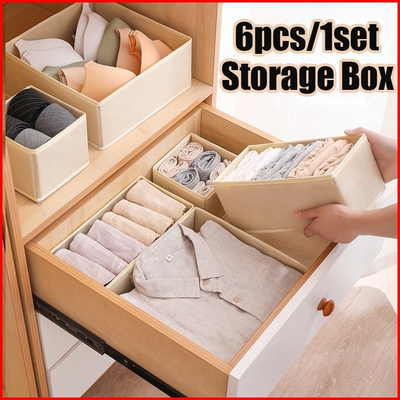 6pcs 1set Storage Box Tas Pakaian Dalam Aksesoris Pakaian Kotak Penyimpanan Serbaguna Set