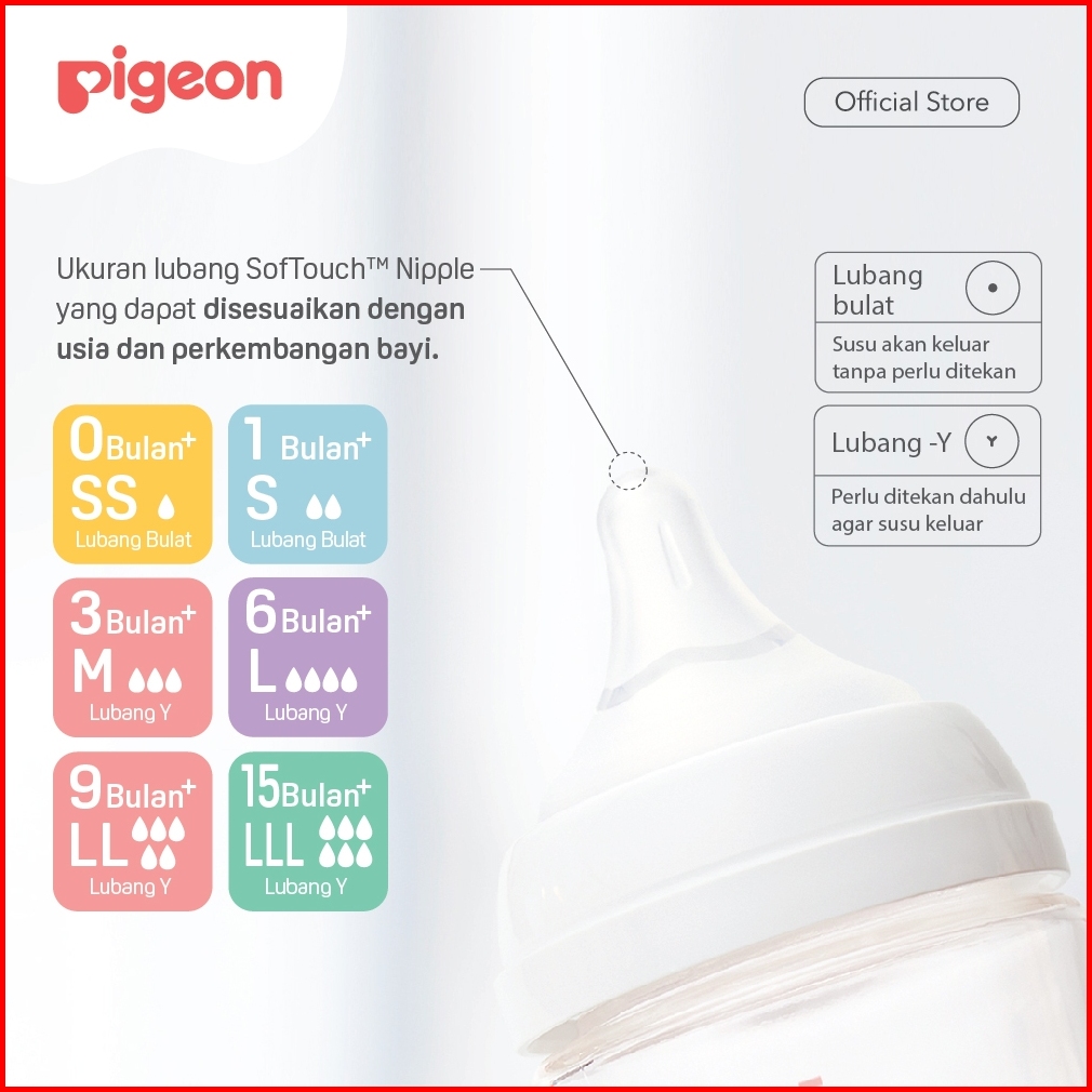 Triple Set Pigeon Softouch Nipple Dot Box 1 Pc Ukuran M L Ll Dot Bayi Latch On Line Lembut Anti Kolik