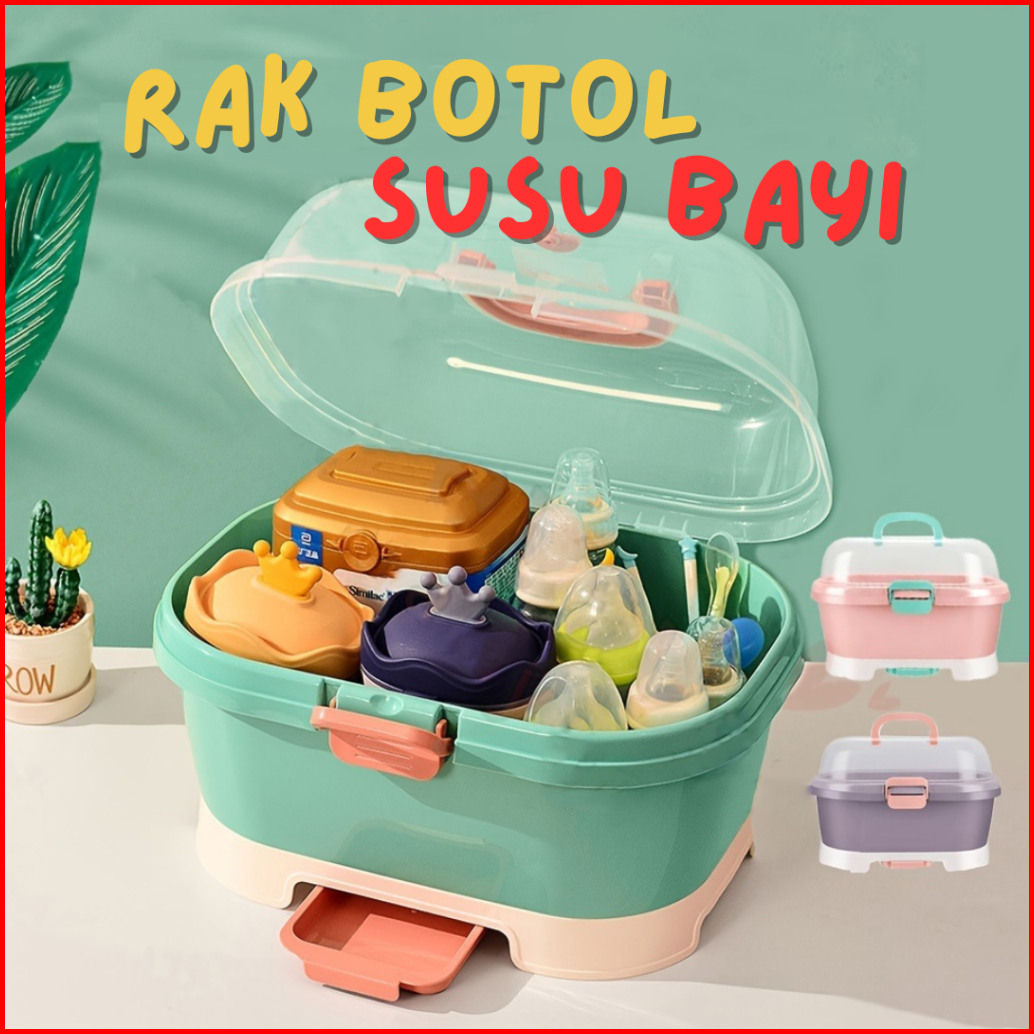 Rak Pengering Botol Susu Wadah Penyimpanan Perlengkapan Bayi Baby Bottle Storage Box Nursing Bottle Drying Rack Box