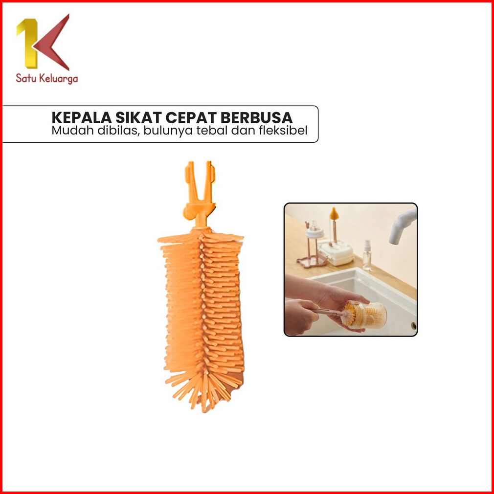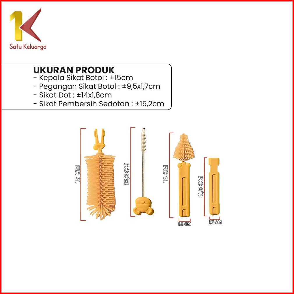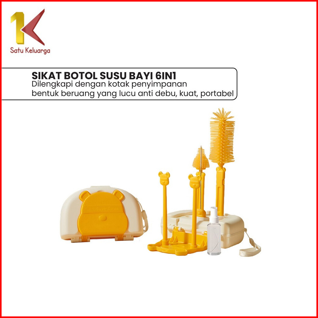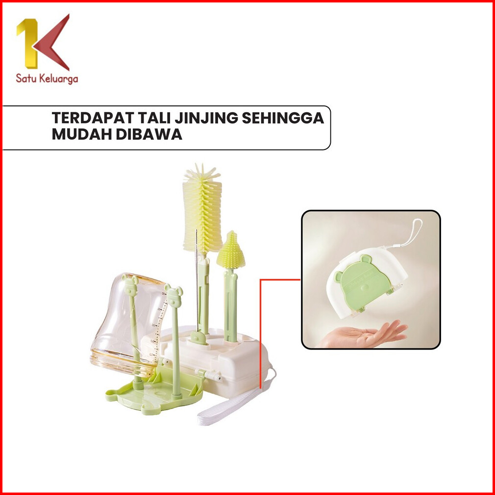 Satu Keluarga Sikat Botol Susu Bayi 6in1 Dengan Rak Pengering Botol C1069 Set Bottle Brush Set Drying Rack Bear Travel P