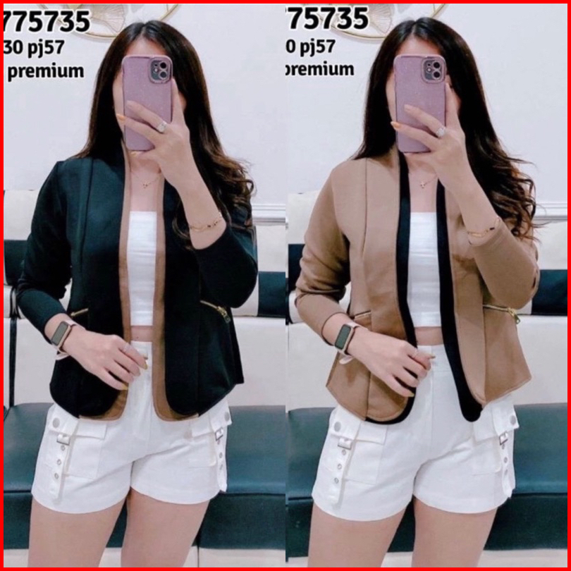 Blazer Scuba Polos Motif 2 Layer Zipper Best Seller Blazer Kantor
