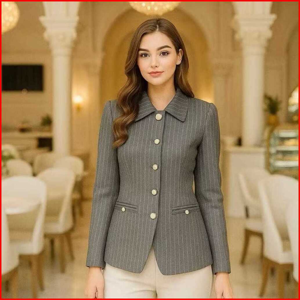 Promo Murah Top Blazer Aluna Kemeja Wanita Stripe Salur Slimfit Blouse Terbaru 2025