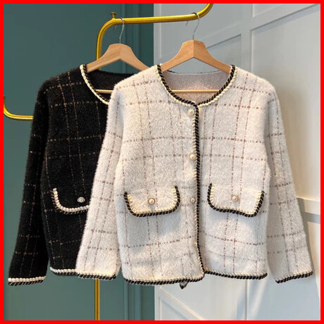 Ekouaer Blazer Wanita Korea Style Furry Braids Edge Elegant Blazer Elegant Knitwear Wanita