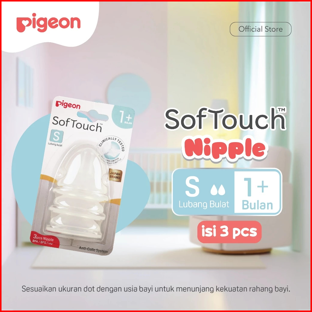 Pigeon Softouch Nipple Dot Wide Neck - 3pcs Blister Dot Seperti Payudara Ibu Elastis Lembut Anti Kolik Lubang Avs Perist