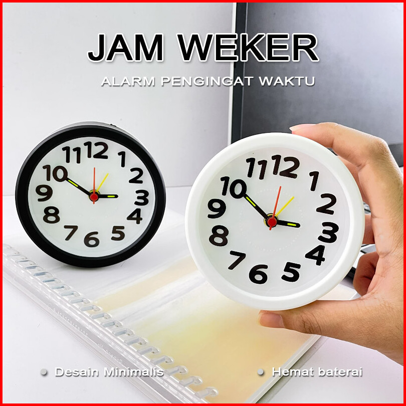 Jam Alarm Beker Meja - Jam Weker Kecil Digital Analog Alarm Tidur Nyaring Desain Minimalis Polos