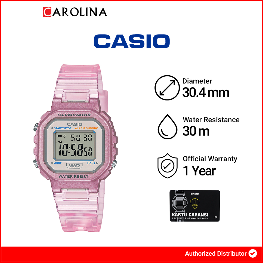 Jam Tangan Wanita Casio General La-20whs-4a Digital Dial Pink Transparent Resin Band
