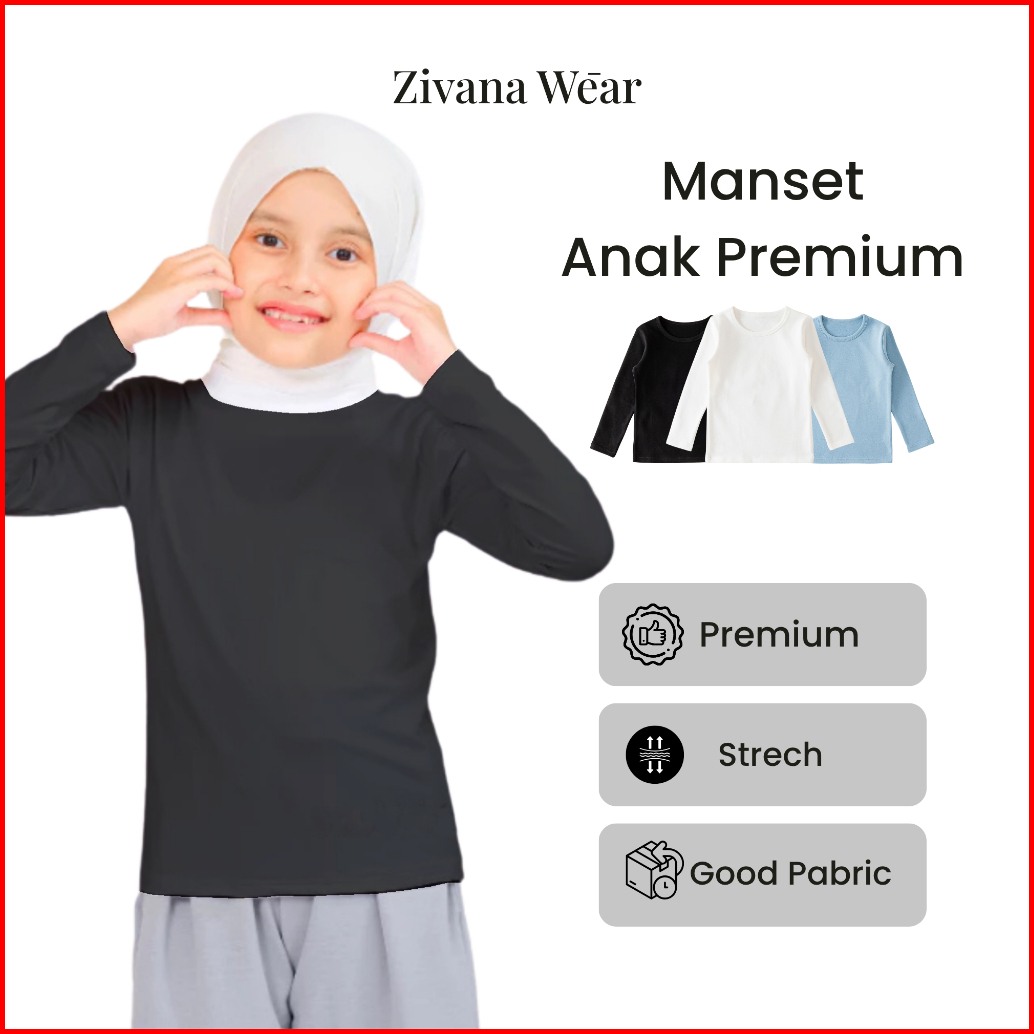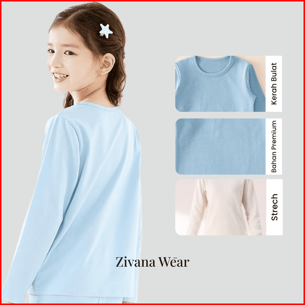 Zivana Wear - Manset Baju Anak Polos Perempuan Lengan Panjang Usia 2-12 Tahun Bahan Spandek Premium - Baju Manset Mangse