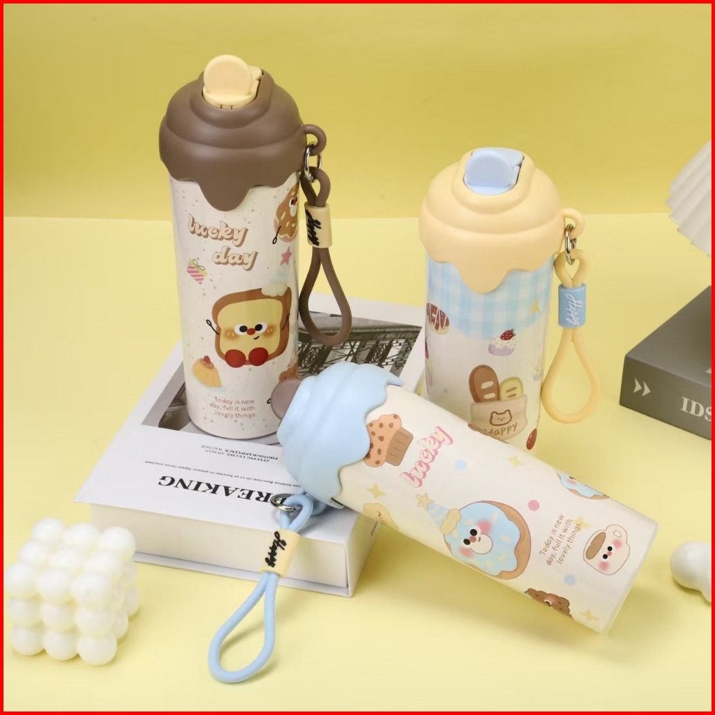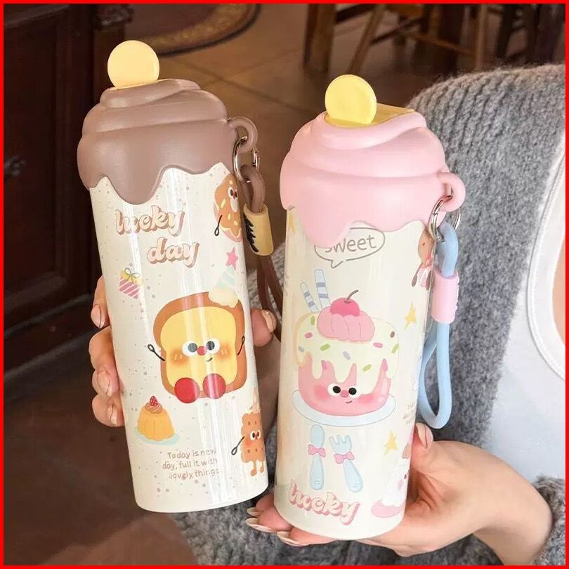 Tumbler Stainless Steel Sus 316 Model Bakery Cake Ukuran 600ml Gantungan Lucu Tumbler Termos Cute