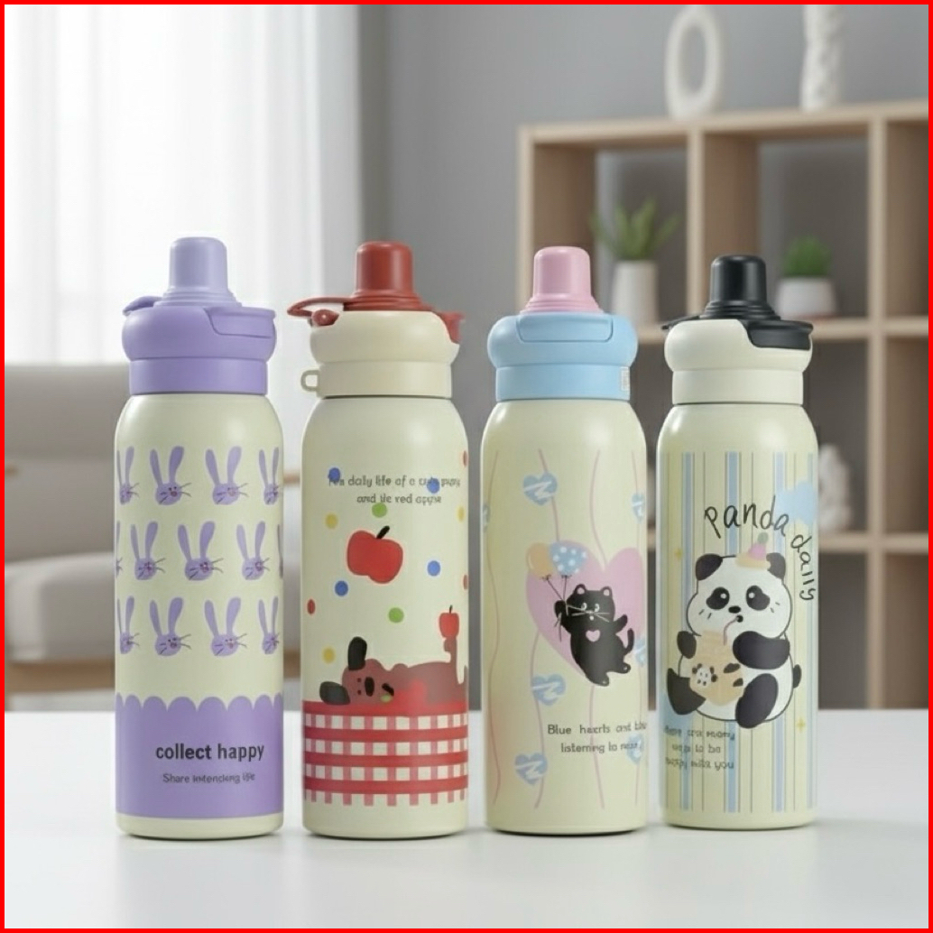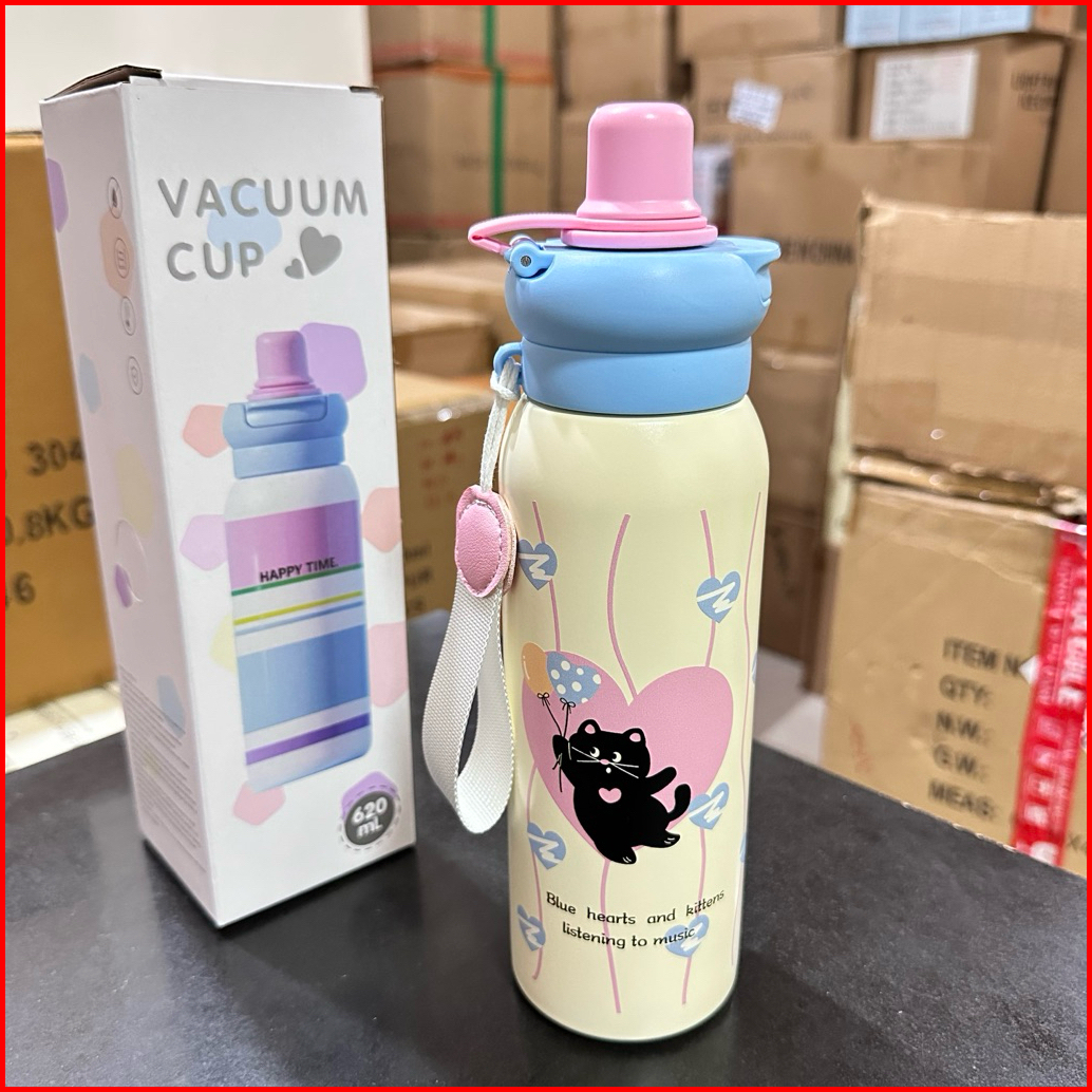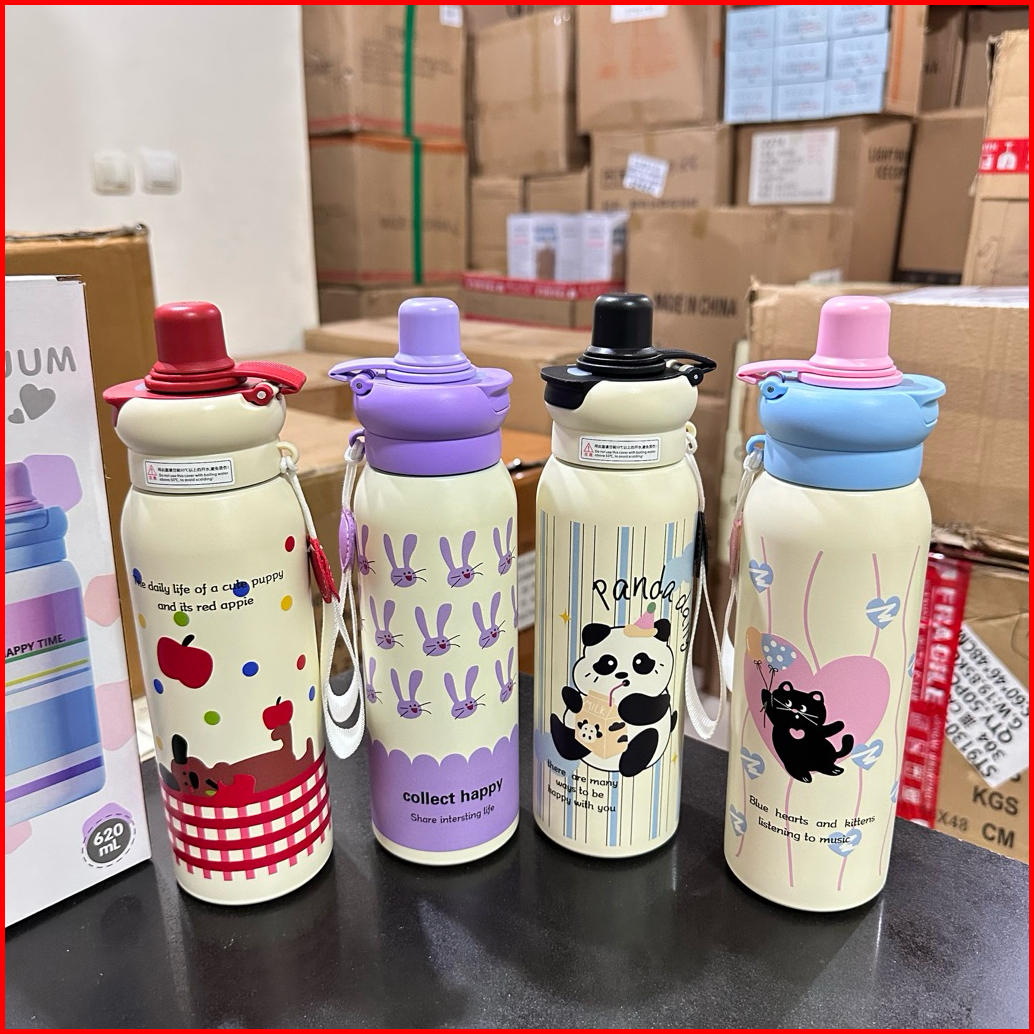 Tumbler Thermos 620 Ml Stainless Sus 304 Tumbler Bunny Apple Miaw Botol Minum Lucu Tumbler Viral Panas Dingin 2 Cara Min