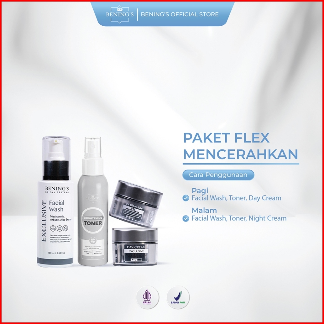 Bening S Clinic Indonesia By Dr Oky Pratama - Paket Flex Skincare - Cream Siang Cream Malam - Sabun Muka Face Wash - Ton
