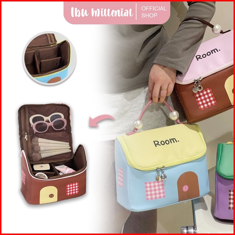 Ibumillenial Tas Penyimpanan Make Up Karakter Washbag Tas Organizer Kosmetik Dengan Pegangan Mutiara Tm007