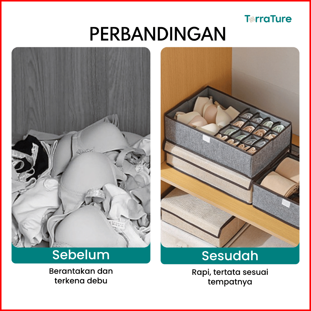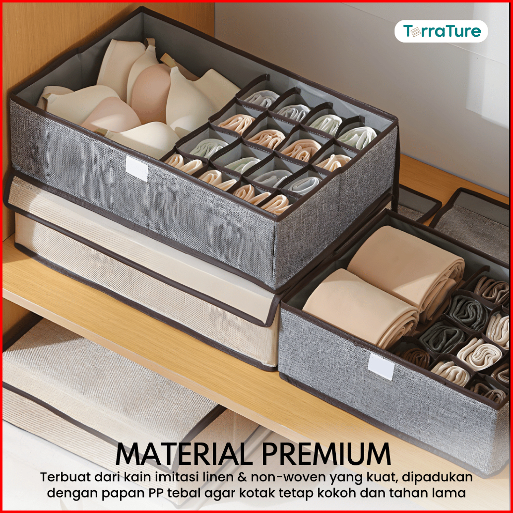 Terrature Tempat Pakaian Dalam Lemari Box Tempat Kaos Kaki Kotak Penyimpanan Underwear Organizer