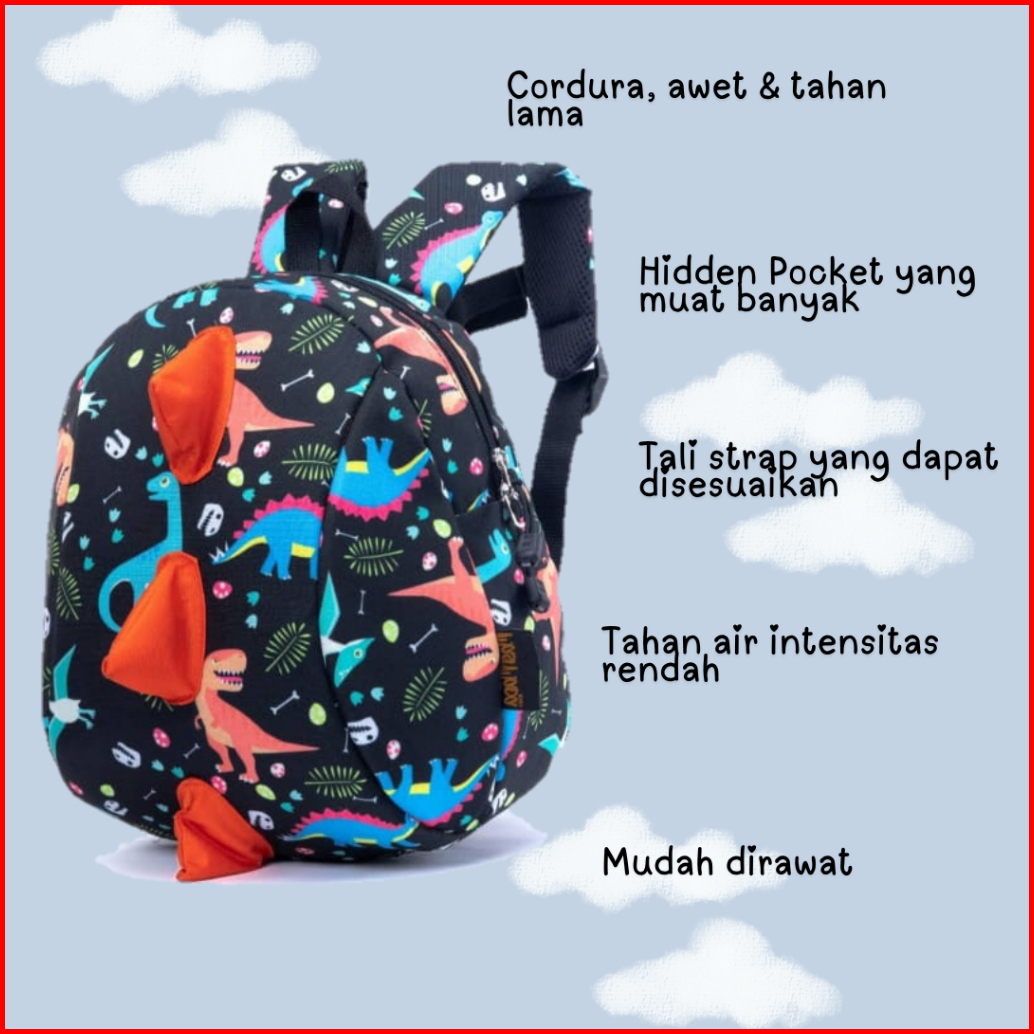 Masimada Kids Mini Dino Bone Backpack Tas Ransel Anak Hitam