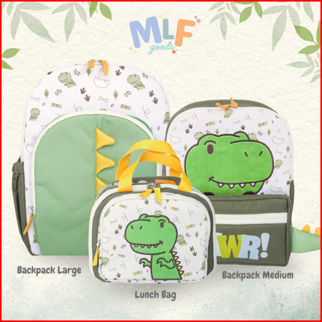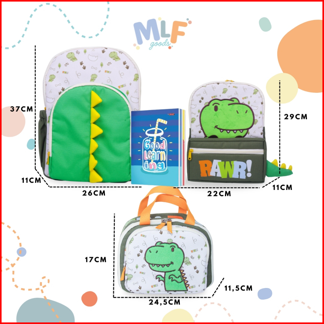 Mlf Goods Dino Series Tas Anak Tk Sd Motif Dino Dengan Varian Ransel Lunch Bag Dan Tas Bekal