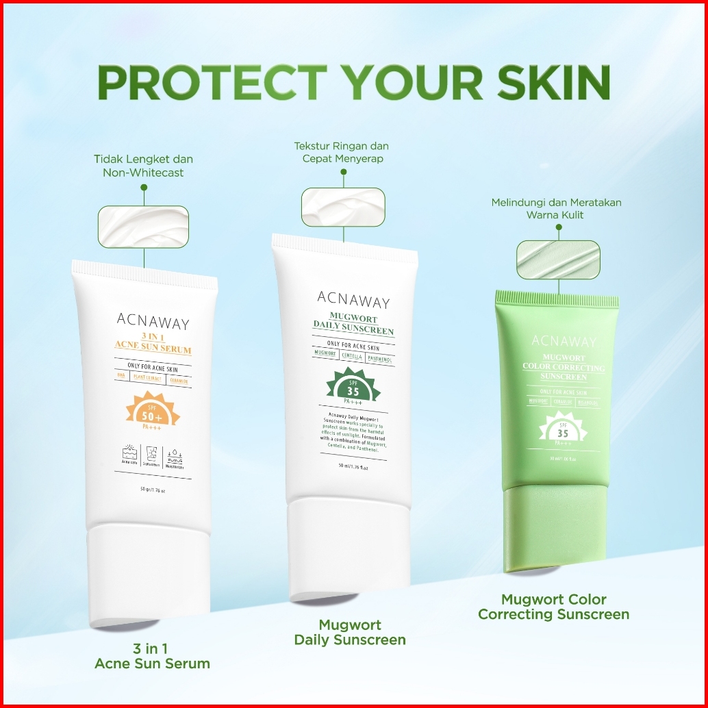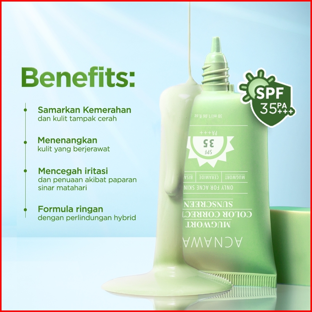 Acnaway Mugwort Color Correcting Sunscreen Spf 35 Pa - Sunscreen Tabir Surya Hybrid Untuk Wajah Berjerawat Calming Redak