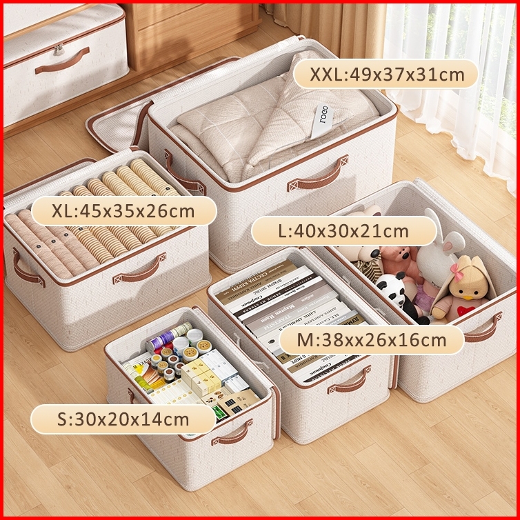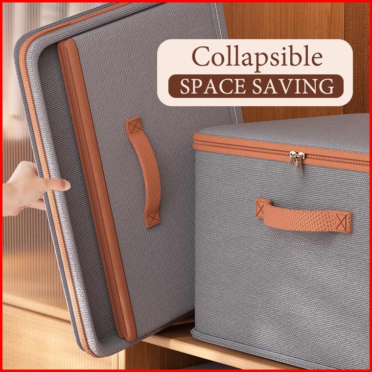 Box Organizer Kotak Penyimpanan Pakaian Lipat Kain Tutup Resleting Storage Box With Lid