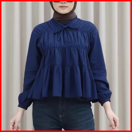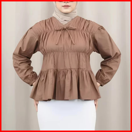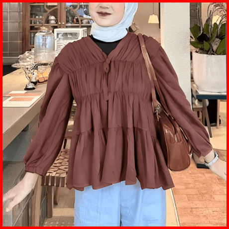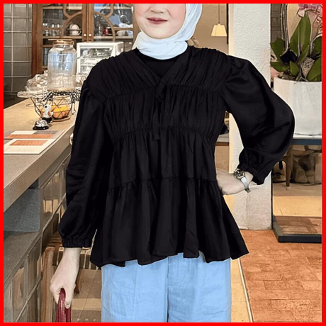Mireya Blouse Kerut Dada Lengan Panjang Bahan Rayon Twill Atasan Wanita Terbaru