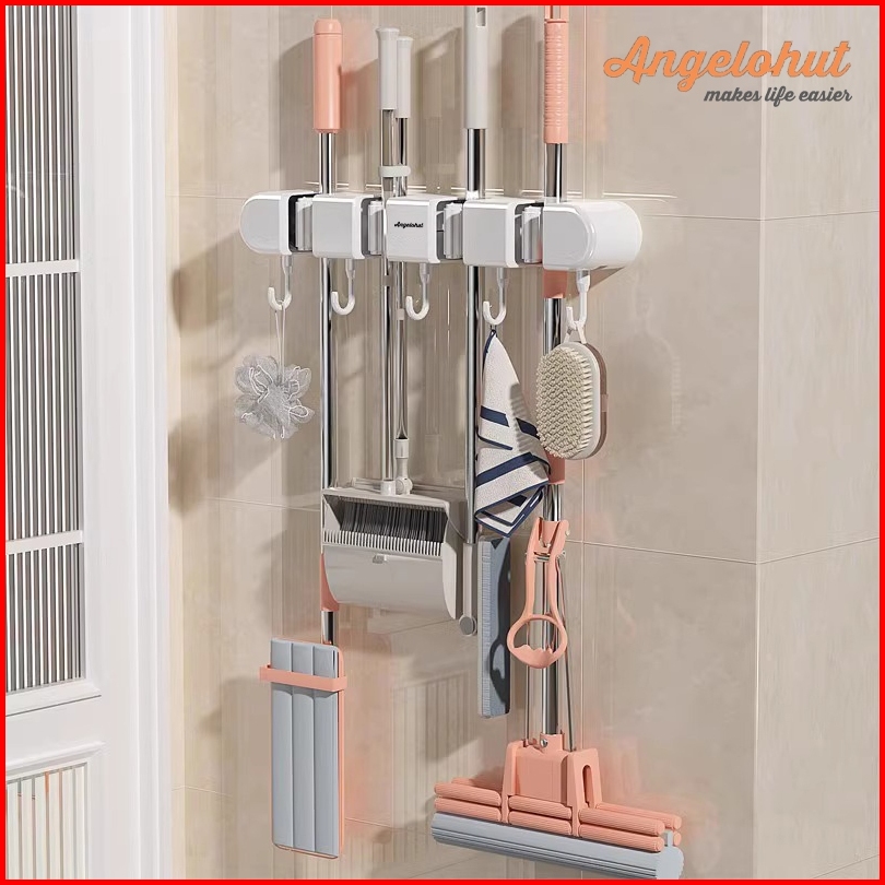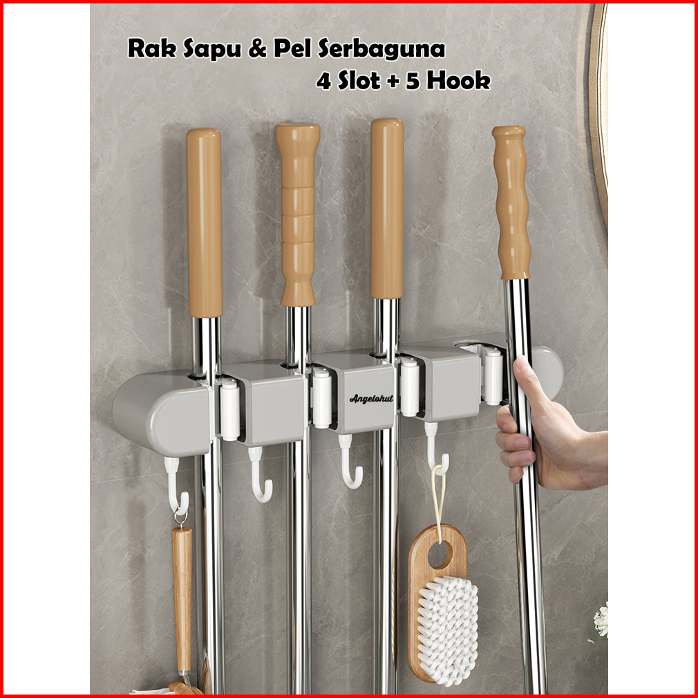 Angelohut Y002 Holder Tempat Gantung Sapu Dan Pel Tempel Ke Dinding 5 Hook