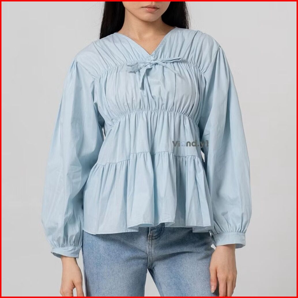 Mireya Blouse Kerut Dada Lengan Panjang Bahan Rayon Atasan Wanita Terbaru