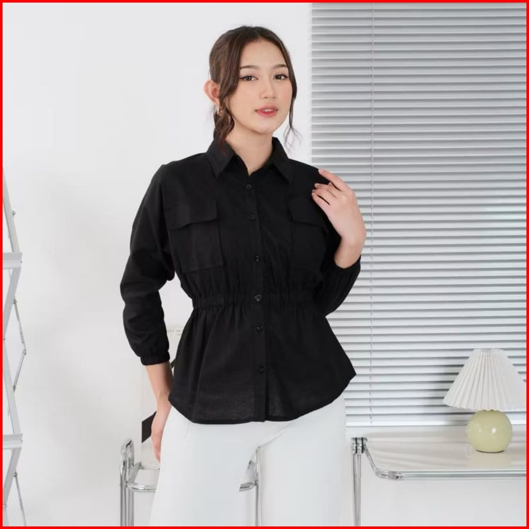 Beena Linen Shirt Top Atasan Wanita Blouse Premium