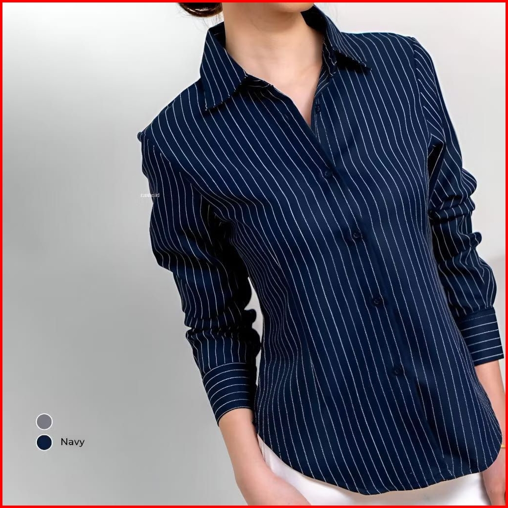 Luna Stripe Kemeja Fitted - Atasan Kemeja Salur - Kemeja Wanita Fitted Stripe Salur Basic Casual