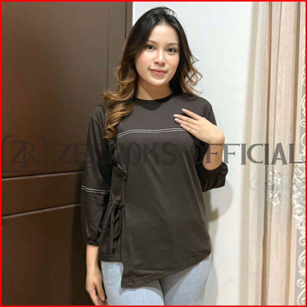 Baju Wanita Lengan Panjang Oryza Variasi Tali Samping Bahan Cotton Combed Nyaman Untuk Sehari-hari