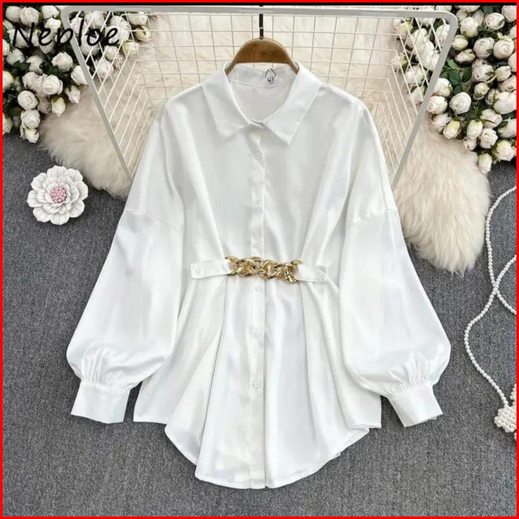 Kemeja Wanita Polos Motif Rantai Lengan Balon Cringkel Korean Style Melda Oversize Jumbo M-xxl