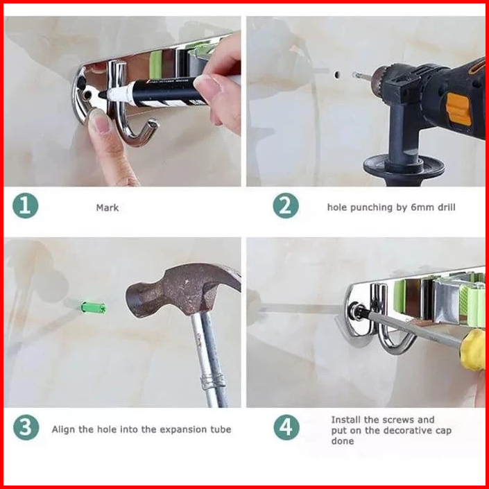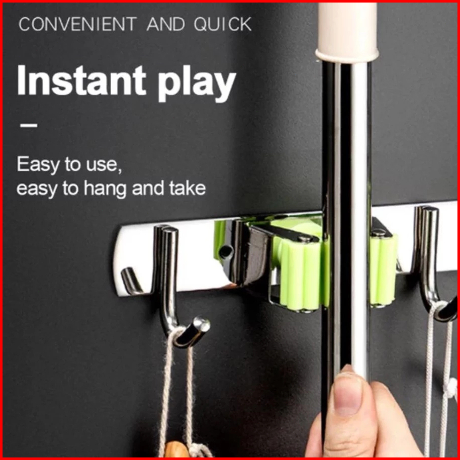 3klip 4kait Tempat Penjepit Gantungan Sapu Pel Dinding 4 Kait Mop Broom Holder Kapstok Stainless 304 Cantolan Sapu