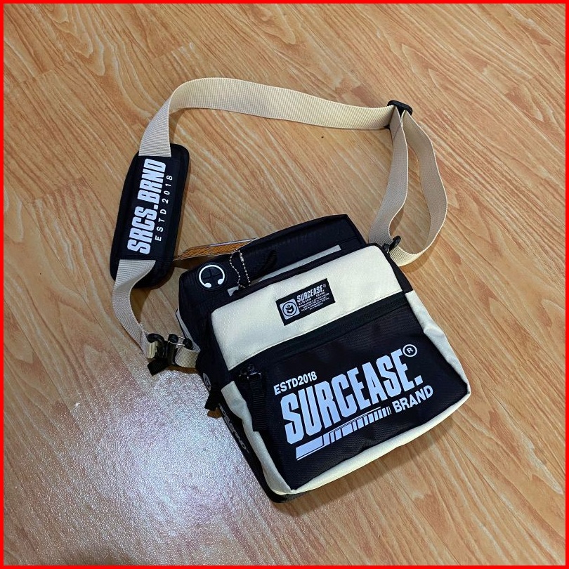 Tas Selempang Pria Wanita Tas Slingbag Black Cream Creamy Latte Hc