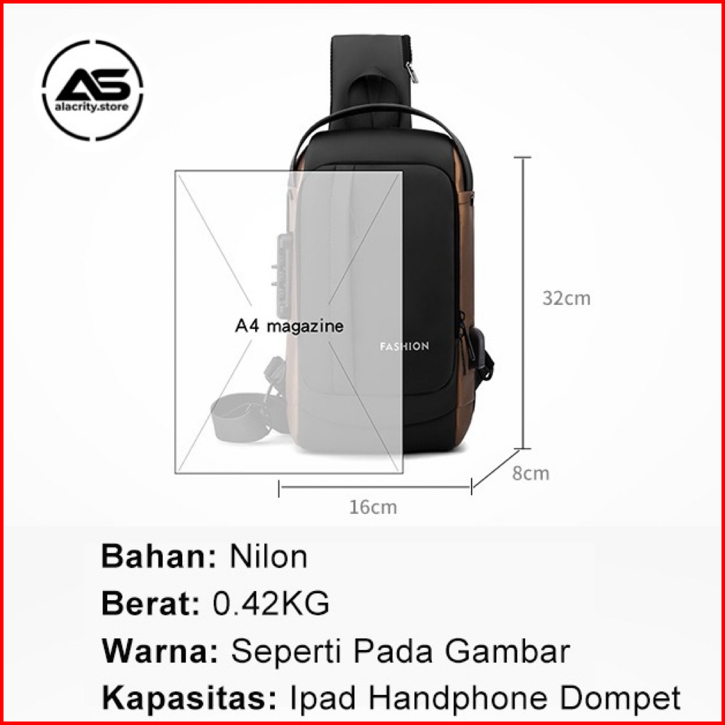 Alacrity X636 Tas Selempang Pria Anti Maling Multifungsi Usb Port Shoulder Bag Anti Air