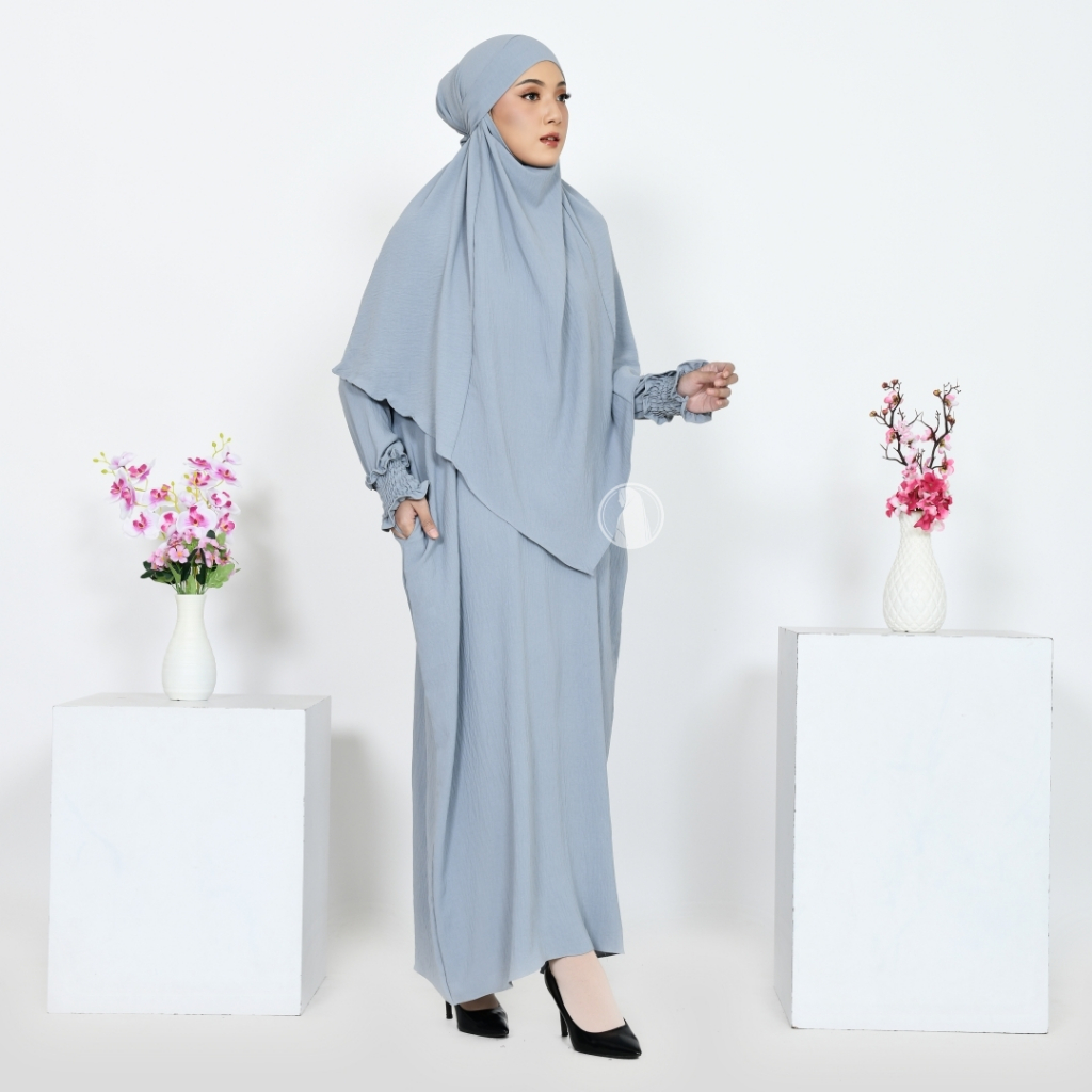 Gamis Syari Abaya Kaftan Yeerim Baju Lebaran 2023 Free Khimar French Cadar Satu Set