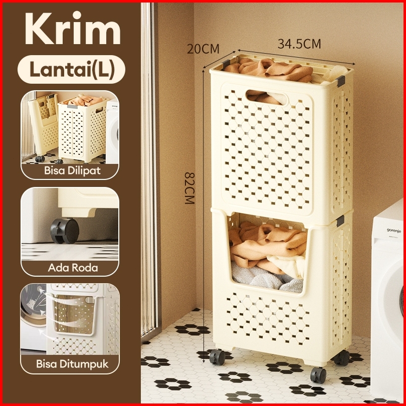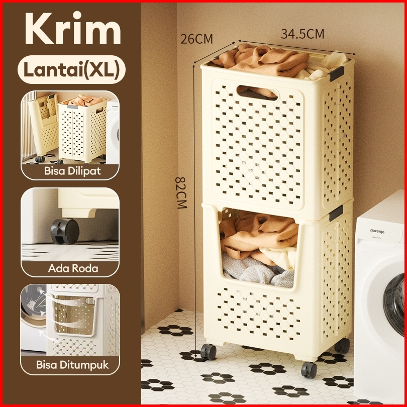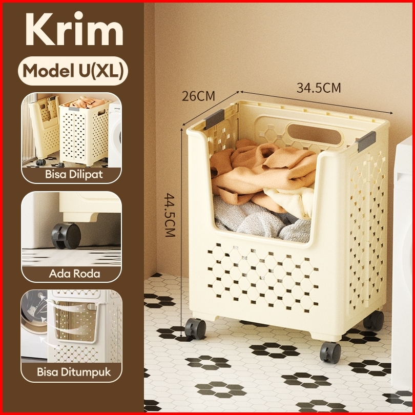 Akea Keranjang Laundry Lipat Multifungsi Dengan Roda Kapasitas Besar Untuk Pakaian Kotor