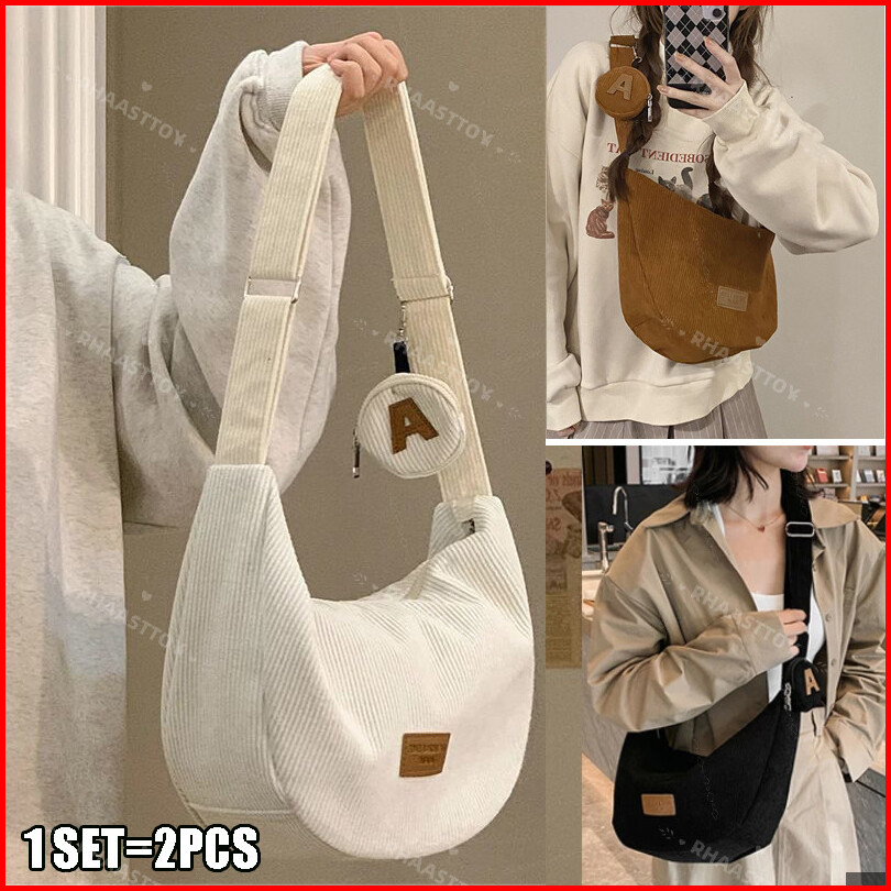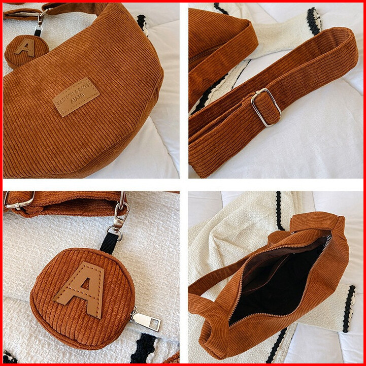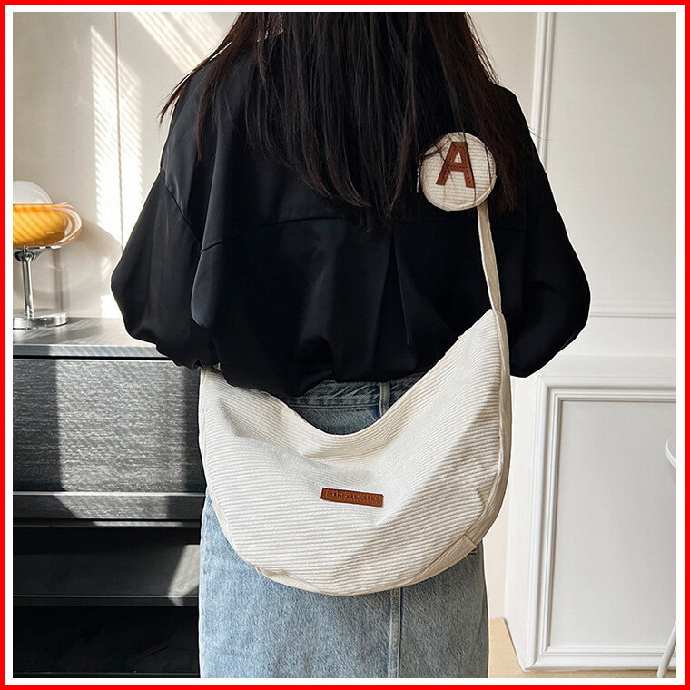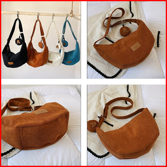 Morebi Canvas Kanvas Besar Tas Selempang Korduroi Wanita Tas Pangsit Baru Corduroy Tas Selempang Kapasitas Besar Sling B