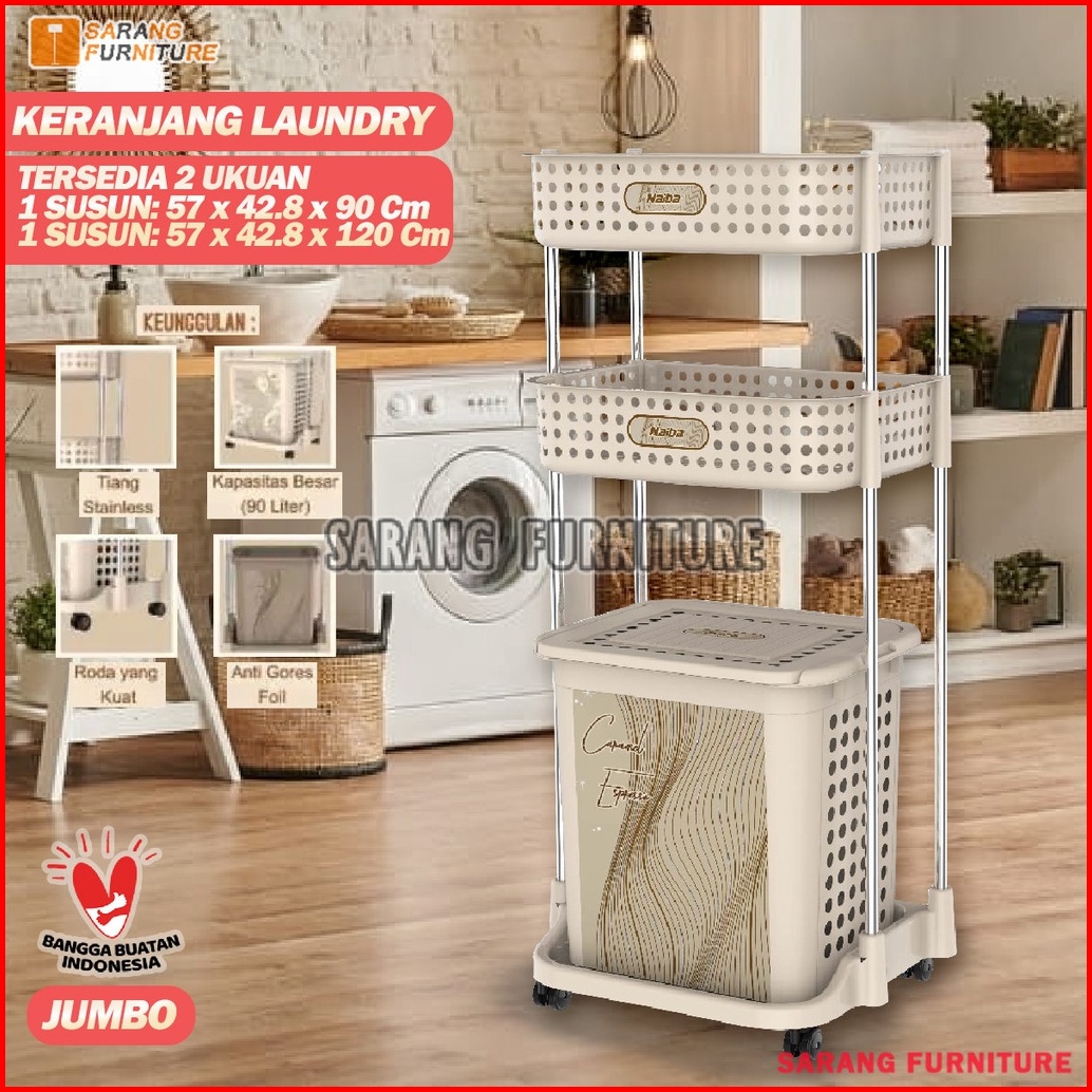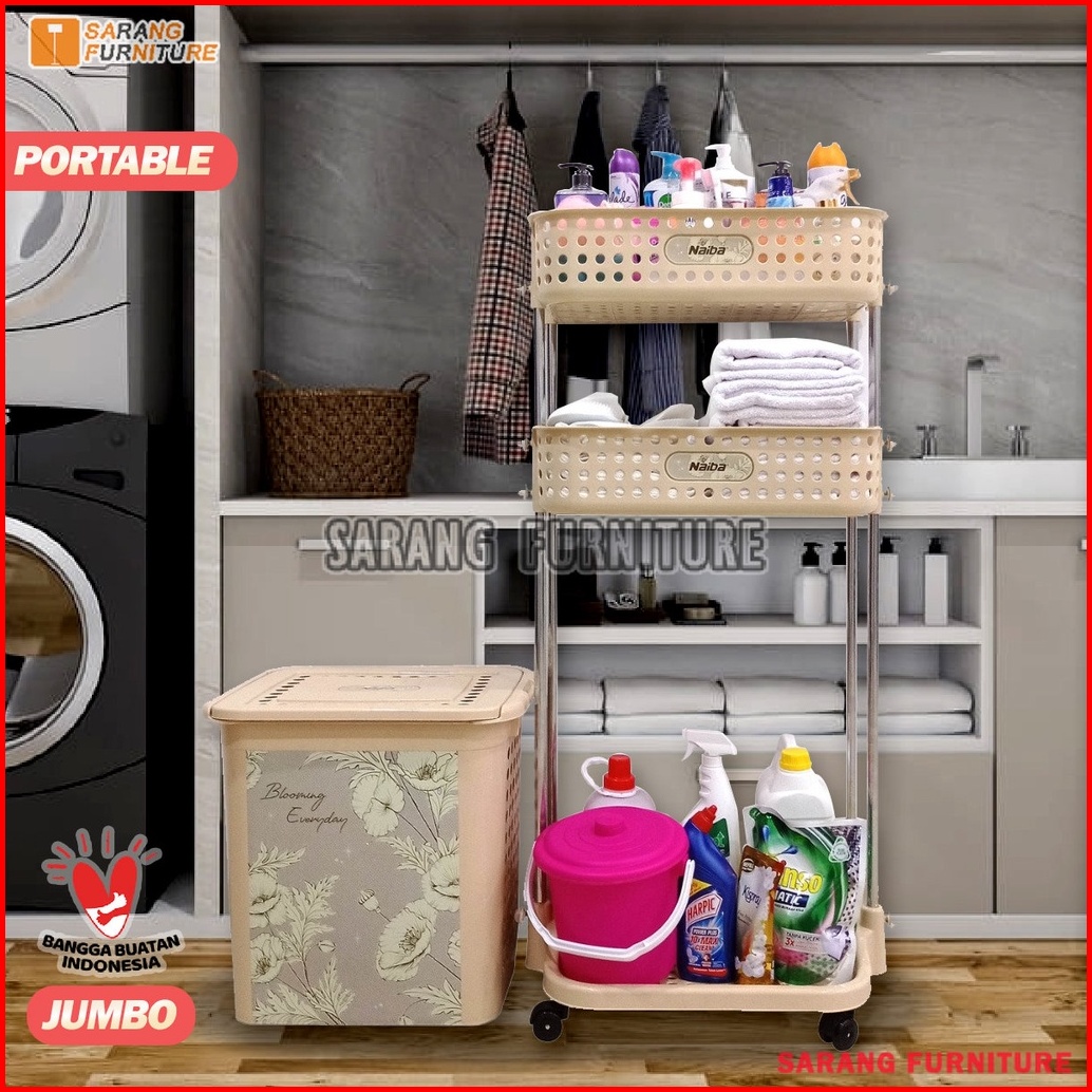 Jumbo Laundry Basket Stainless Steel Rak Keranjang Baju Kotor Naiba Emerald Keranjang Baju Laundry Bag Original
