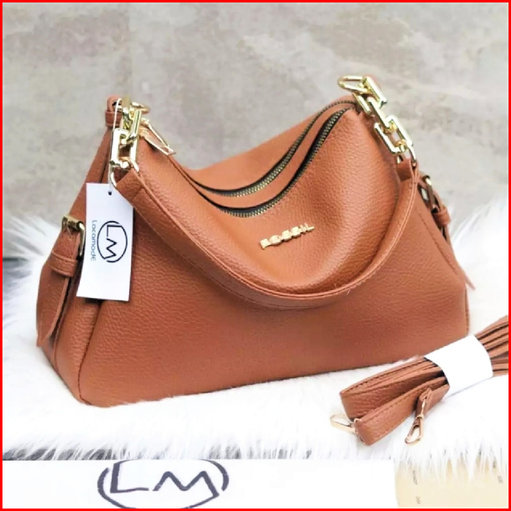 Rihaga Tas Selempang Wanita 2 Ruang Pu Leather Kulit Jeruk Elegan Kerja Hangout