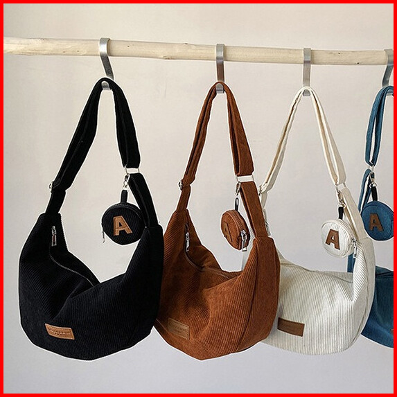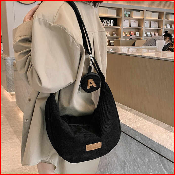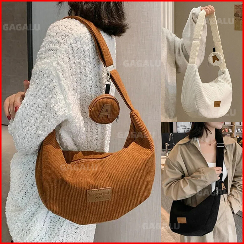 Gagalu Tas Pangsit Baru Corduroy Tas Selempang Kapasitas Besar Sling Bag Casual Korean Style Tas Bahu Wanita