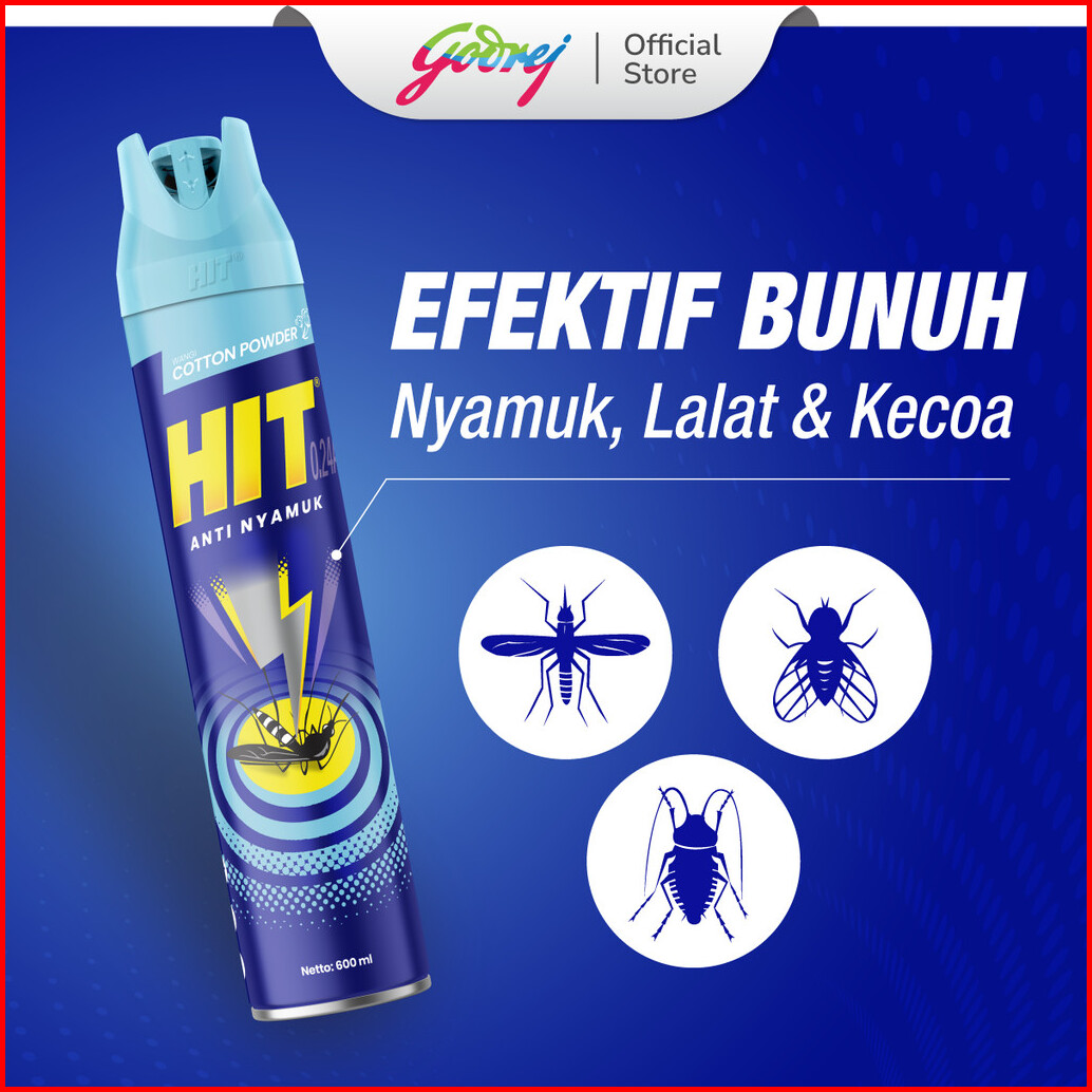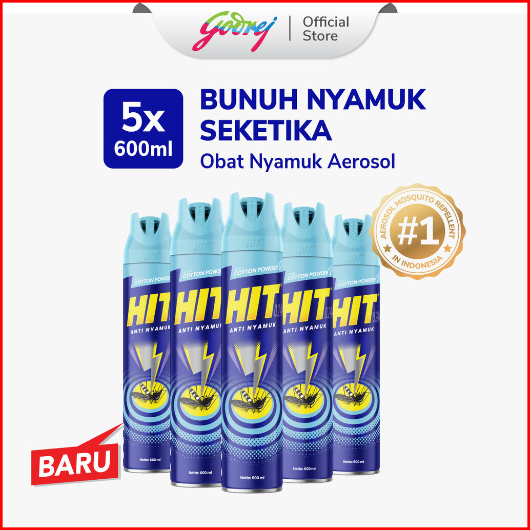 Hit Aerosol Cotton Powder 600ml X 5- Obat Nyamuk - Bunuh Nyamuk Penyebab Demam Berdarah Dbd