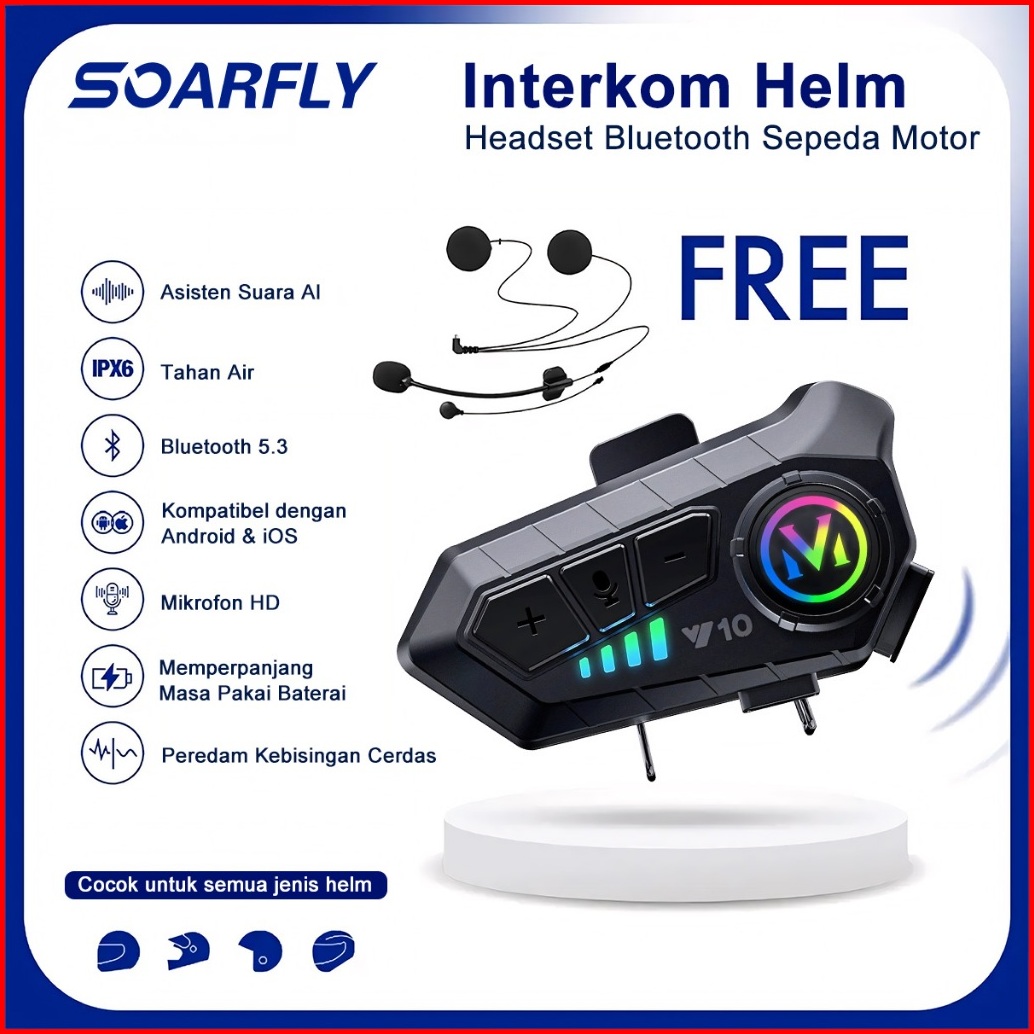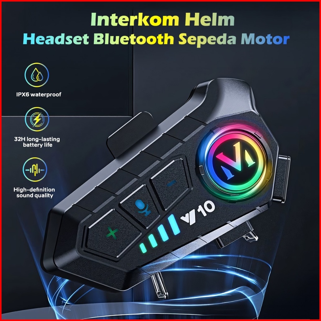 Intercom Y10 Headset Bluetooth 5.3 Helm Sepeda Motor Bluetooth Hands Free Call Kit Ipx6 Tahan Air