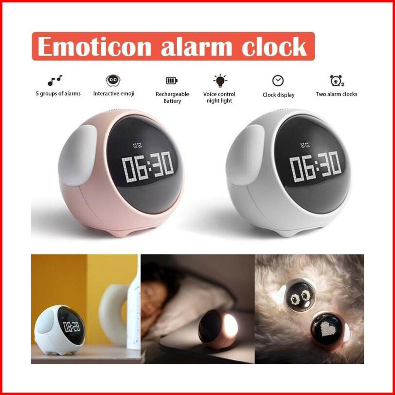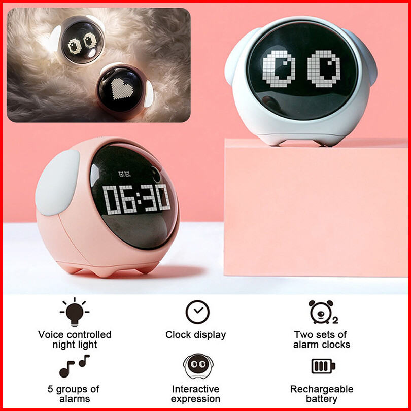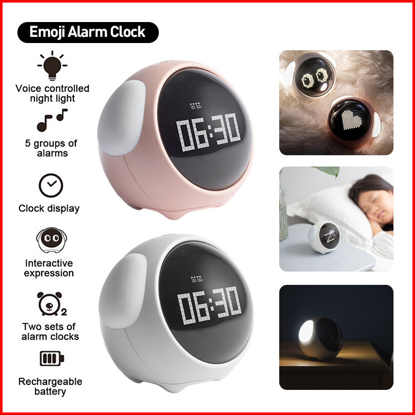Jam Alarm Clock Pixel Lamp Multifunction Interactive Emoji Imut Lampu Tidur Jam Weker Hadiah